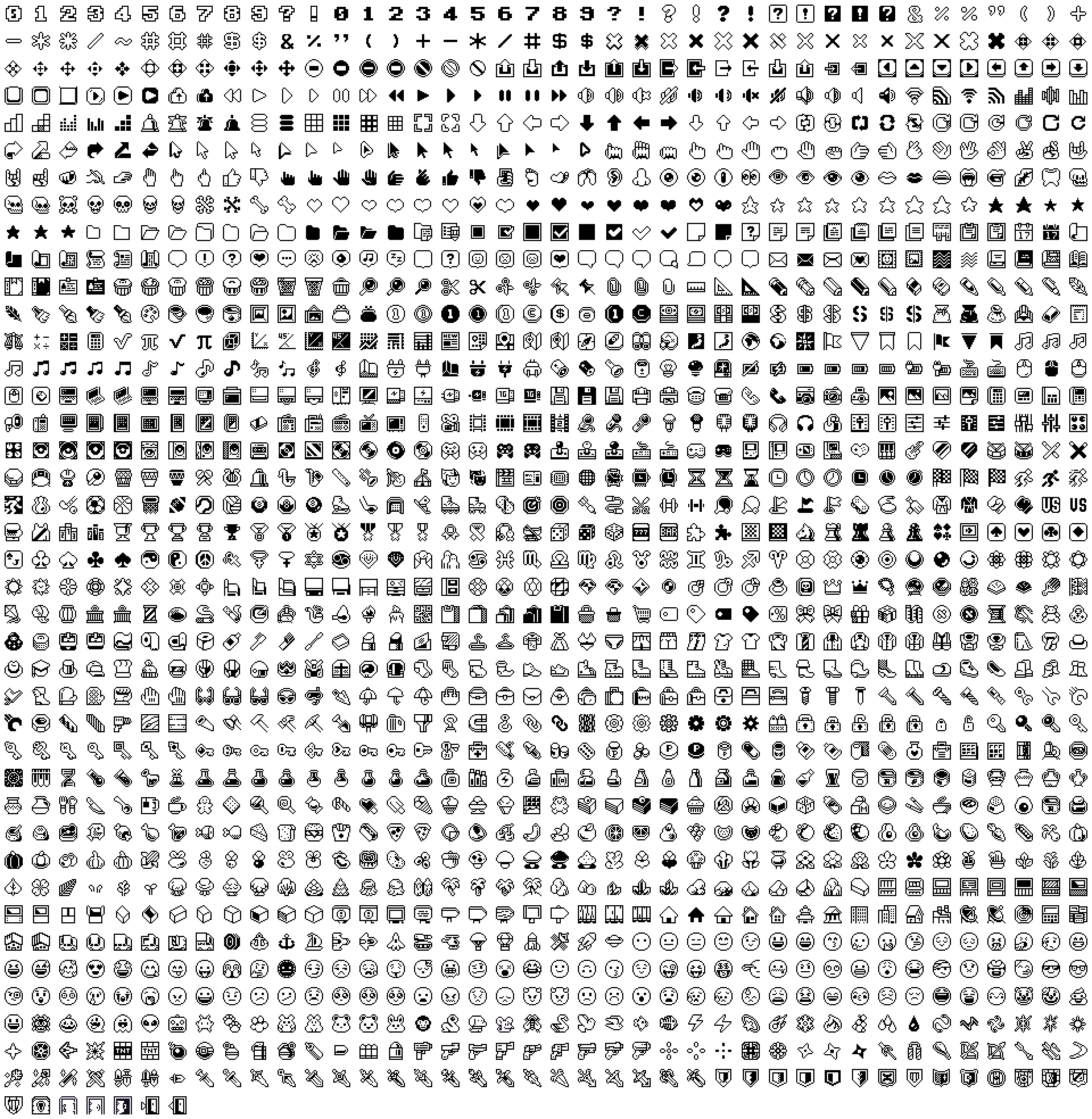 - Categories: controls, actions, inventory, tools, symbols, emotions, status, sound, arrows, etc.